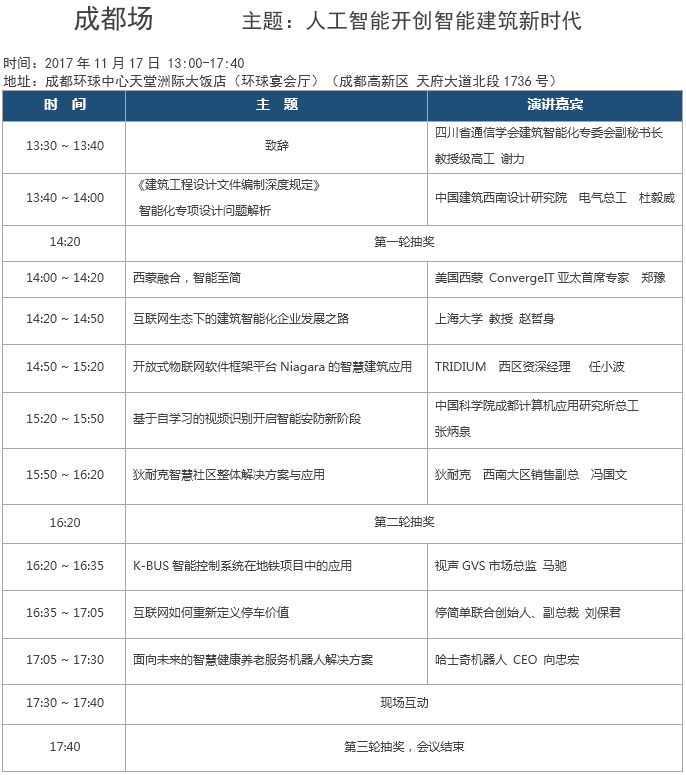 本屆峰會(huì)成都站主題為:人工智能開創(chuàng)智能建筑新時(shí)代。將于11月17日下午,在成都環(huán)球中心天堂洲際大酒店舉辦。