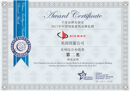 一年一度的建筑智能化行業大型盛會——2017年第十八屆中國國際建筑智能化峰會已經圓滿落幕。12月7日晚,素有智能建筑行業“奧斯卡”之稱的《中國智能建筑品牌獎》頒獎典禮在廣州東方賓館盛大舉行,本次頒獎典禮對2017年在智能建筑行業成績突出的近百家企業,進行了全面的總結和表彰。擁有百年歷史的美國西蒙,蟬聯了“十大綜合布線品牌獎”第二名。