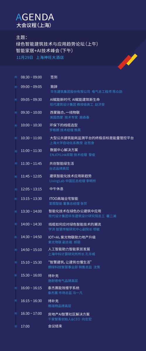 據悉,本屆上海峰會邀請到華東建筑集團股份有限公司、現代建筑設計集團、上海中科計算研究所、上海大學等知名專家,以及羅格朗、紫光物聯、朗綠、施耐德、美國西蒙、臺達、ENJOYLink歡聯、Living Lab、宇洪、愛圖智能等國內外智能化領域知名品牌參與,知名專家、設計院、知名廠商、系統集成商等嘉賓齊聚一堂,探討綠色智能建筑技術及應用,共話智能家居、AI技術發展趨勢。