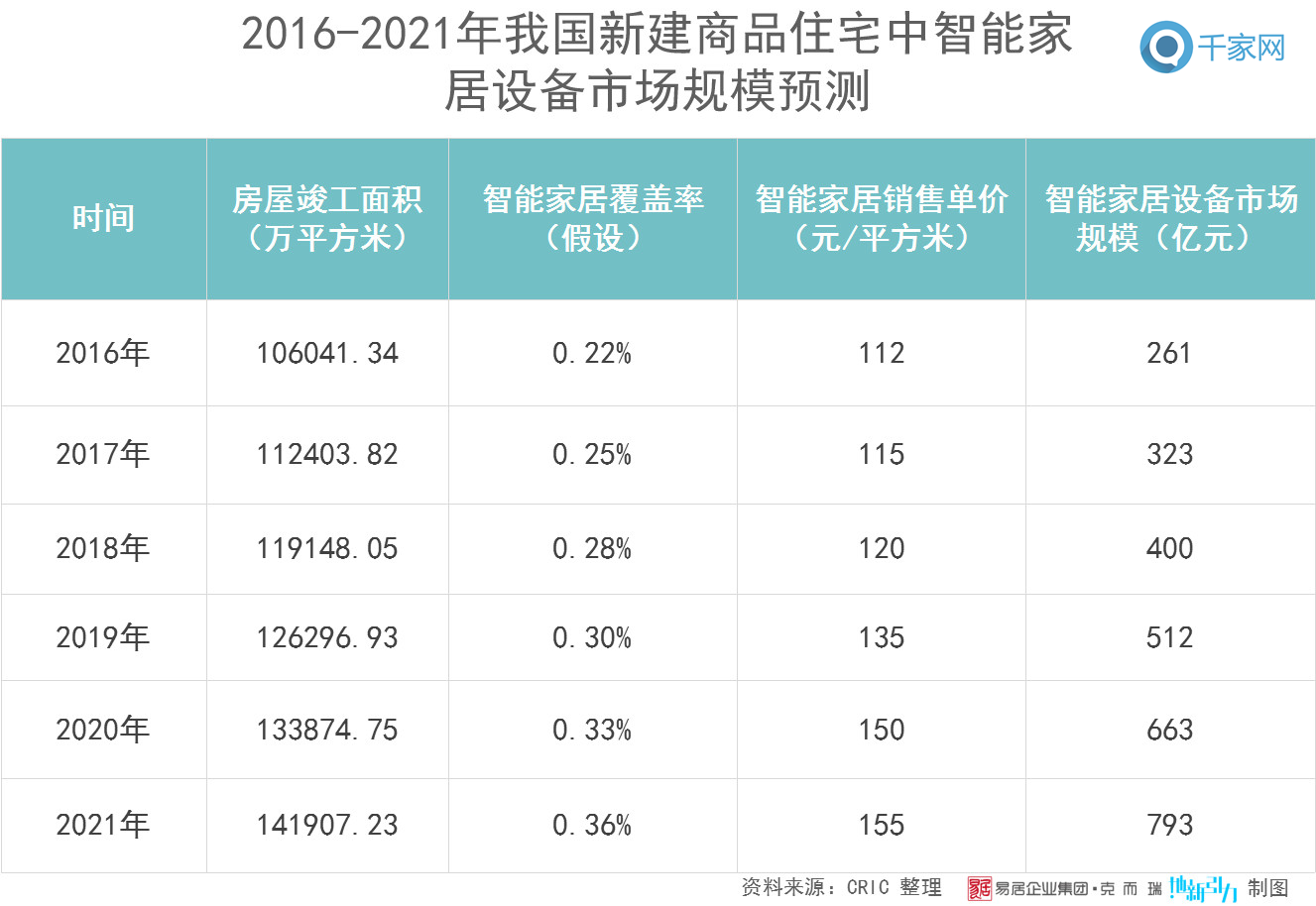 2016-2021年我國新建商品住宅中智能家居設備市場規模預測
