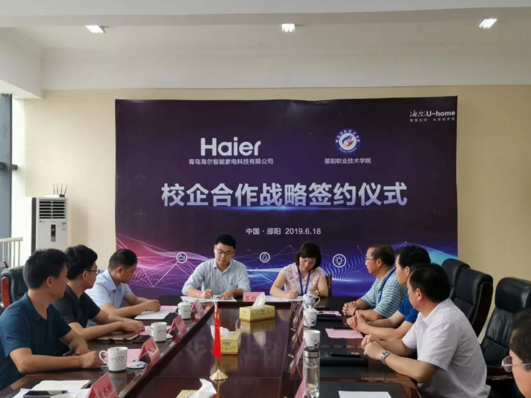 青島海爾智能家電科技有限公司智慧校園南部大區(qū)總監(jiān)黃冰彬與邵陽職業(yè)技術(shù)學(xué)院院長段雪梅共同簽署了《校企合作協(xié)議》,簽約儀式在掌聲中圓滿結(jié)束。
